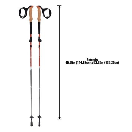 The Terrain Alpha Trekking Poles will not only assist you breathing life into uncharted territories but will elevate your game, breathing life into you and the challenges you wish to meet. The compact Z-pole design folds up small and provides an easy to stow-away format for your pack. Aluminum construction is strong but lightweight, while neoprene wrist straps are padded for your comfort during use. A cork upper grip helps streamline your trekking poles for easy packing while maintaining strength to handle any Terrain. Lower grip surface offers users with comfortable and squeezable EVA foam, helping to make hiking easier on your hands. Accommodating weather terrain changes for users, trekking poles come with summer and winter season baskets for all-weather exploration. Poles are designed to fit users 5’1” to 6’5” tall and as a pair weigh, 16.9-ounces. Explore, discover, and conquer the world beneath your feet with Terrain™.