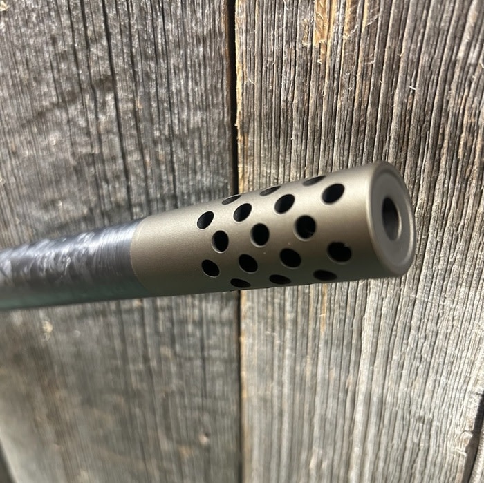 Muzzle brake (include): The Muzzle brake screws into the end of the barrel and it is equipped with 42 angle holes which allow gases to escape around the barrel, which reduces the recoil by approximately 50%. When designing, we added a 15 degree forward angle on all holes. This directs the sound shut away from the shooter. It is offered in stainless steel for barrels of the same type and in titanium for carbon barrels.
