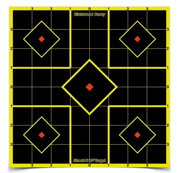 Five targets on each sheet - Use center target for sighting-in and four smaller targets for testing results of various ballistic loads or for confirmation of sight-in groups. Convenient 1" numbered grid lines simplify scope adjustments.
