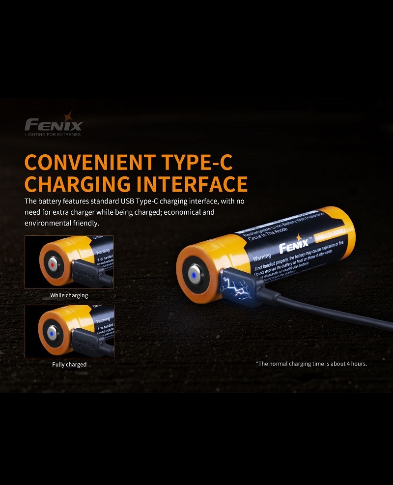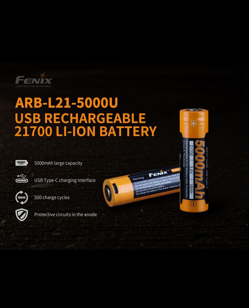 ARB-L21-5000U USB rechargeable 21700 Li-ion battery, sufficient power, steady performance, the capacity of the 21700 battery is twice as powerful as the common 18650/2300mAh battery.