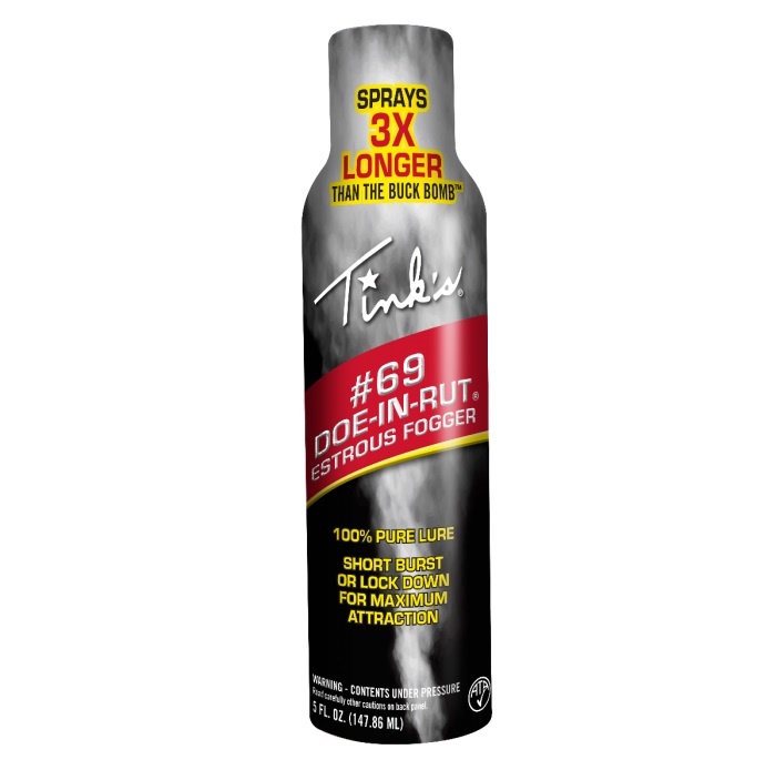 If it’s not broken, don’t fix it. One thing you can always hang your hat on is Tink’s® Signature #69 Doe-in-Rut®. Your granddaddy used this for years with success and there is nothing better than taking something Classic and adding a Twist. The All-New Tink’s® Fogger features 100% pure scent dispersal with the innovative Bag-On-Valve System. Tink’s® Fogger emits an undeniable cloud of sexual attractant that features the signature Tink’s® #69 Doe-In-Rut® formula that will not only travel to increase your reach, but will draw in that buck you’ve been waiting on.