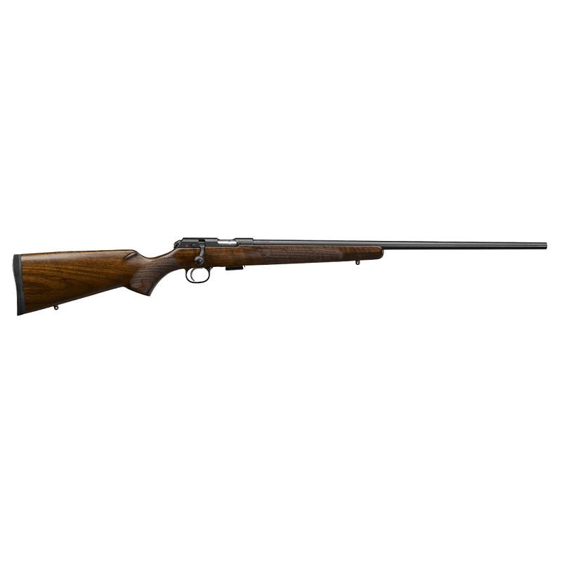 The classic American-style rimfire rifle, this gorgeous 457 has a 20” barrel with no sights and is meant to be topped with a scope. Its Beech Wood stock has a high, flat comb and a classic checkering pattern.
