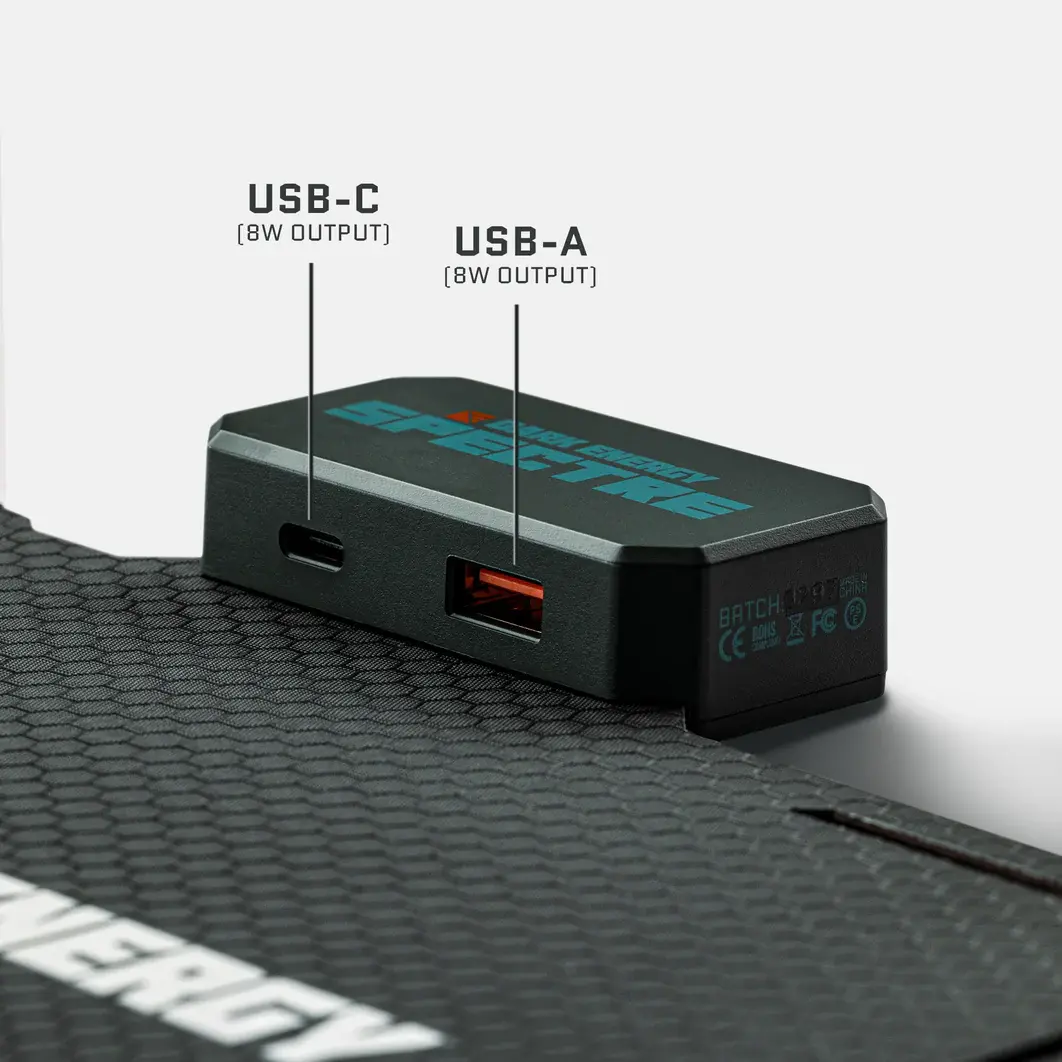 This isn’t your average solar panel. Spectre 8W is lightweight, weatherproof, and built to keep your essentials charged when weight and space matter most.