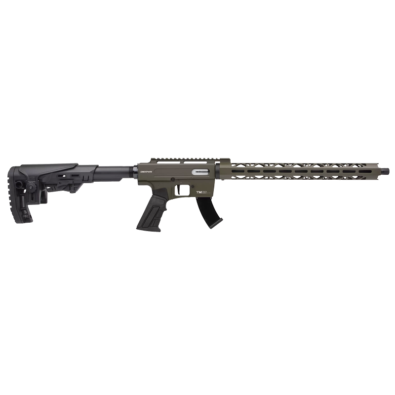 The TM22's blowback semi-auto operation makes for a fun day of shooting, with higher capacity magazine options. *Shown with larger magazine*