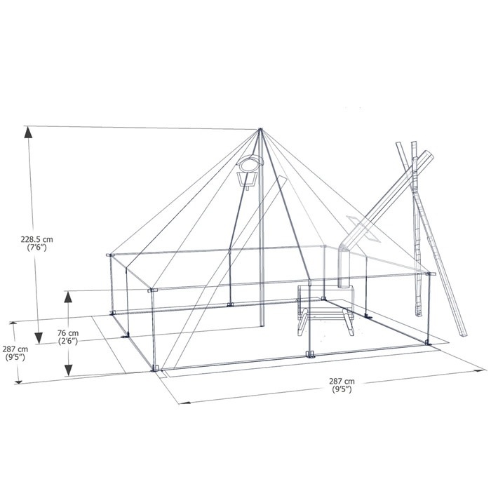 The Esker Classic 2 10x10 winter camping hot tent offers a traditional 4-sided pyramid wall tent that’s portable, lightweight, and durable: perfect for Canadian winters. Esker’s Classic 2 model moves the installed stove pipe ring to the right side wall (as opposed to straight up in the Classic model) – which necessitates the use of an elbow in the pipe stack, and moves the stove to the front right quadrant: making side by side sleeping possible, and creating more contiguous interior space. Made in Canada from Sunforger 10.10 oz army duck canvas, it comes with an air vent, sewn loops for a drying line and a 2-way zippered opening. The Esker Classic 2 10x10 sleeps 3 - 4 with a stove, or 4 - 6 without a stove.