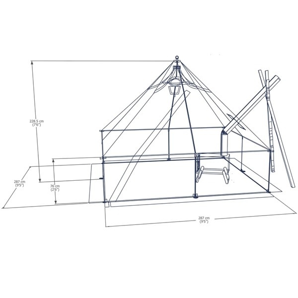 The Esker Multi is designed to be highly versatile, accommodating various methods for setting up and supporting in a wide variety of environments. An exterior stainless steel peak ring allows the tent to be hung from a line, as opposed to using a pole. A new adjustable interior harness support system allows for maximum flexibility with the use of interior central supports (poles, staves, branches), and newly included grommets on the tent side wall tie-outs allow for the use of optional sidewall poles (sold separately), or as receptacles for using sticks and branches - negating the need for side wall tie-out stakes, and reducing the overall footprint of tent lines. As with all of the Esker's tents, the Multi comes standard with an installed stove pipe ring (fits 3" -5" pipe), an adjustable air vent, a two-way zippered opening and installed drying line loops.