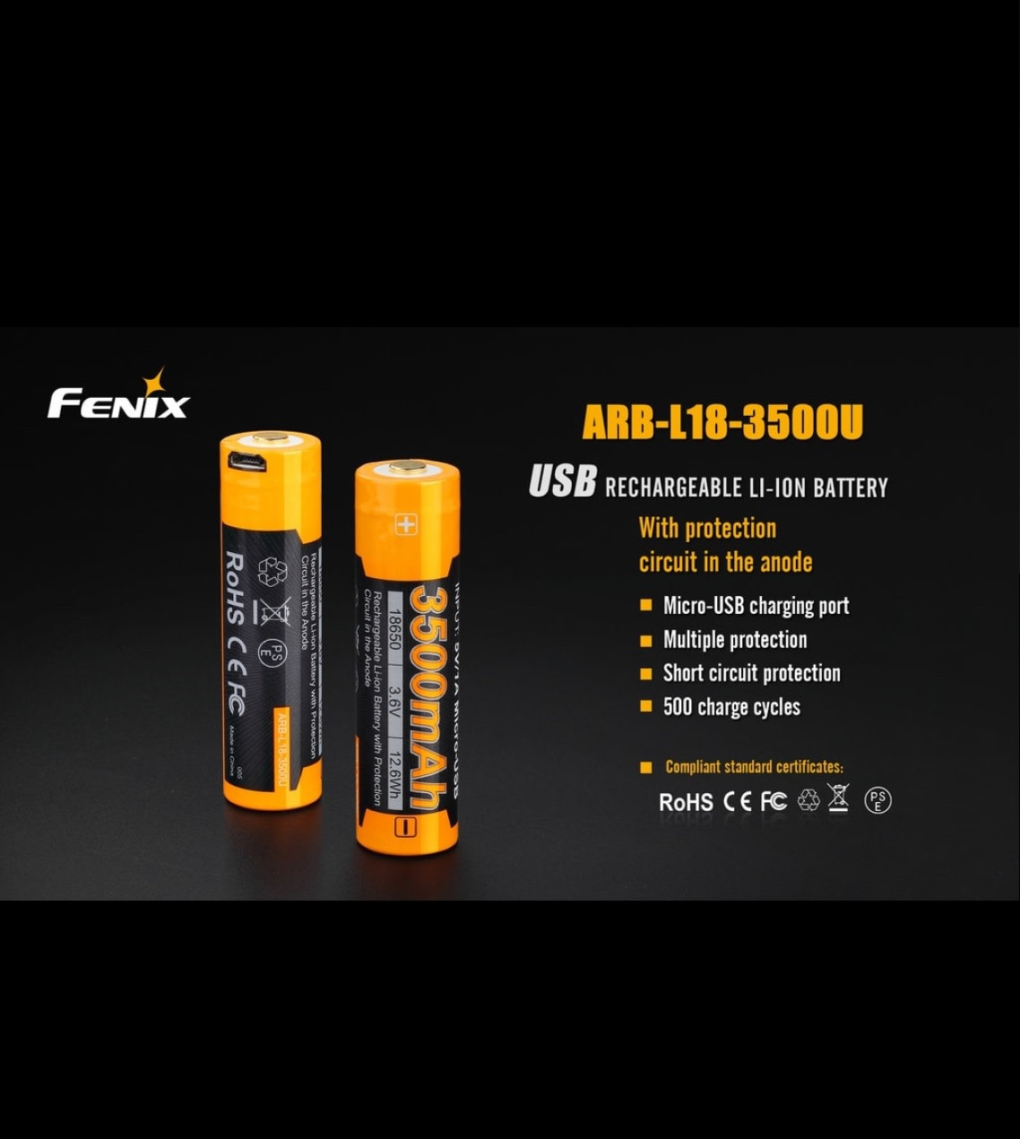 The biggest and baddest Fenix battery just got upgraded! Please welcome the Fenix Fenix ARB-L18-3500U USB rechargeable lithium-ion battery! The ARB-L18-3500U battery can be charged by its built-in USB port or by an external battery charger as well.