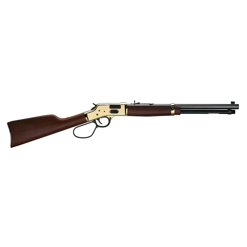Both the straight-grip buttstock and the forearm are crafted from luxurious genuine American walnut and accented with a polished brass barrel band and buttplate to match the receiver. The attention to detail carries through with the smooth action and crisp trigger that distinguishes an authentic, American-made Henry.