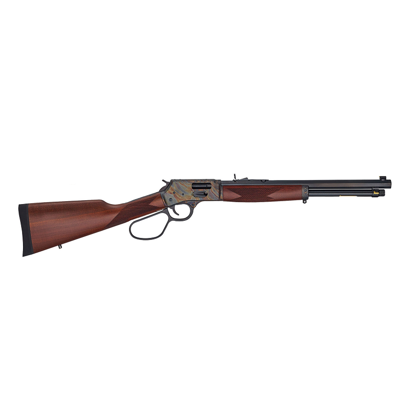 Henry knows very well that no two people agree on the ideal rifle, so they not only give you your choice of Big Boy calibers in .357 Mag/.38 Special, .44 Mag/.44 Special, and .45 Colt, but you can also choose between either a standard 20” barrel and lever, or a compact 16.5” barrel fitted with a large-loop lever for cold-weather gloved use (or just-because style points in general). Both long and short models feature clean checkering on fore-end and straight-wrist stock, their adjustable buck and bead sights, an automatic in-hammer transfer bar safety, and the best-of-both-worlds side loading gate and removable tube magazine configuration.