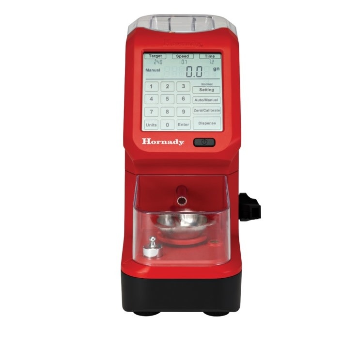 The Hornady® Auto Charge Pro provides precise, customizable powder dispensing in an easy-to-use, space-saving unit. Precise to within 0.1 grain, the Auto Charge Pro offers customizable trickle speeds for various powder types, as well as custom time settin