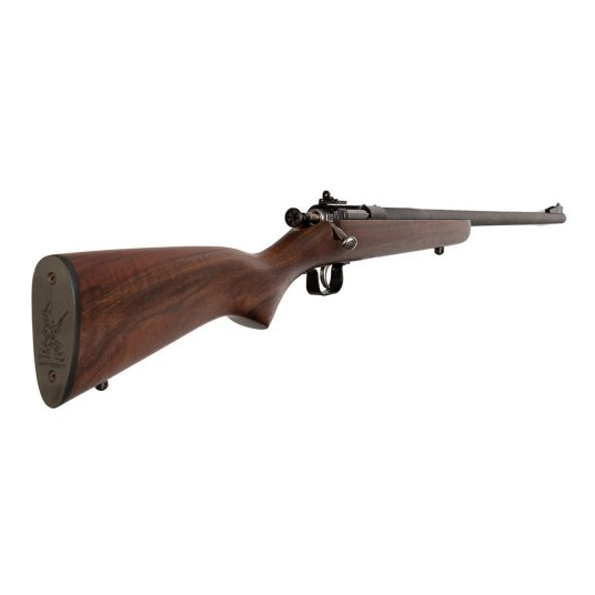 Caliber: .22 Short, Long or Long Rifle standard or high velocity.Action: Manually cocking single-shot bolt actionTrigger Pull: 5lbs. (approx.)Safety: Rebounding firing pin automatically blocked to prevent accidental discharge.Length Of Pull: 11.5″Sights: Adjustable Rear Peep sight, Fixed front sightDrilled and Tapped to accept Crickett® scope mountsBarrel Length: 16.125″Overall Length: 30″Stock: American WalnutWeight: 3 lbs.
