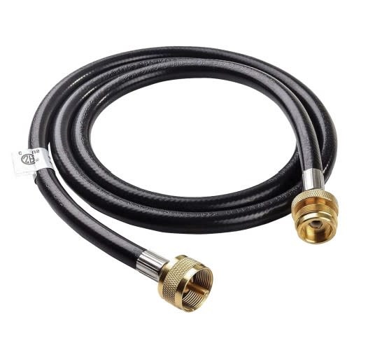 5-foot flexible propane hose extension assembly that can connect a 1lb propane cylinder, camp stove, or camping BBQ to a distribution post or T connector with 1"-20 Male cylinder thread and a 1"-20 Female cylinder thread connector.