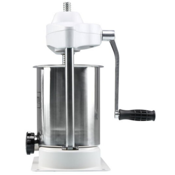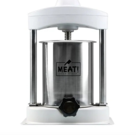 Stuff some sausages with MEAT!'s Vertical Stuffer. This stuffer will hold up to 15 lbs of your favorite sausage meat and includes various attachments and stuffing tubes so you can create the perfect sausage. With stainless steel construction and an ergonomic handle, this machine will stand the test of time while being comfortable to use regularly. The stuffer also quickly disassembles for easy cleaning.