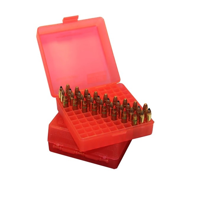Ammo Box 100rd Flip-Top P-100 Series 22 Mag-17 HMR Clear Red