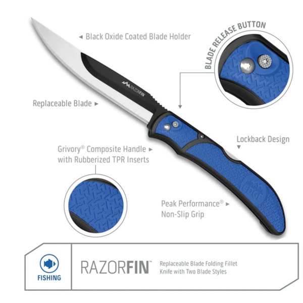 The razor-sharp RazorFin and is always ready to fillet the daily catch and then some with a replaceable blade performance that never needs sharpening.