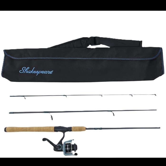 The Shakespeare Excursion series provides the ideal assortment of rods, reels and combos for general purpose and bass freshwater anglers. Excursion Spinning Travel Combos feature 4 ball bearings + 1 roller bearing for smooth operation and hand feel. An aluminum spool and stainless steel bail wire increase reel performance and strength without adding excess weight. Molded soft touch handle knobs have been incorporated to enhance comfort and precision. And the reel comes pre-spooled with Stren line, making it easy to head straight to the water for action! For the rod, carbon composite blank construction and stainless steel guides with titanium oxide inserts, providing the ideal mix of performance and value! Premium cork handles have been added to this series for added comfort with a traditional look and feel.