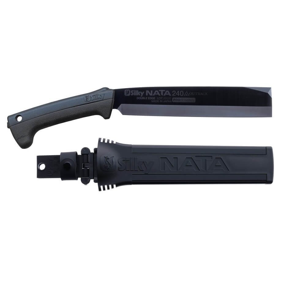 The Silky NATA Outback Edition 240mm is a versatile and powerful cutting tool that combines the functionality of a hatchet and machete. The NATA is perfect for clearing vines, chopping wood, small logs and kindling for your campfire.This professional-grade implement features a 9.5-inch (240mm) double-edged blade made of black oxide-coated tool steel which also reduces shine and glare, offering additional stealth during hunting. Also, this tool is known for its exceptional durability and edge retention.