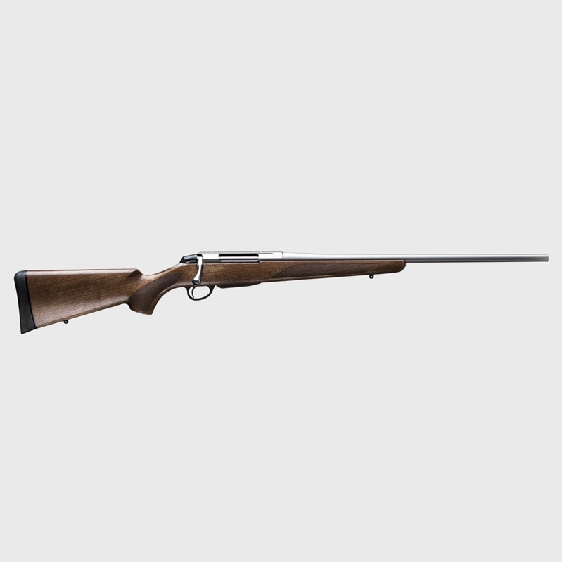 The Tikka T3x Hunter is designed for the shooter who appreciates the warm feel of a wooden stock combined with solid performance. The stainless metal parts make this the perfect choice for all weather conditions and makes for easy maintenance.