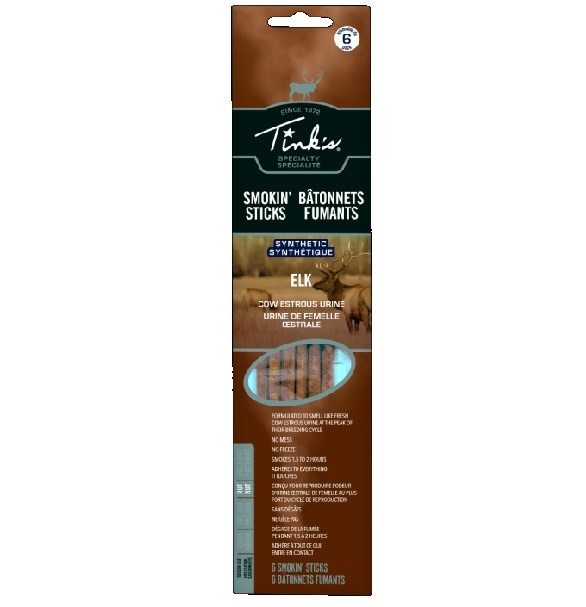 Tink’s Smokin’ Sticks Cow Estrous use smoke to deliver pure scent that bulls find irresistable.