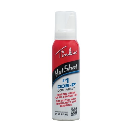 Tink’s Hot Shot #1 Doe-P Mist is 100% non-estrous doe urine and an all-season lure. Every press of the button produces a fine mist that floats along the wind currents for long range attraction.