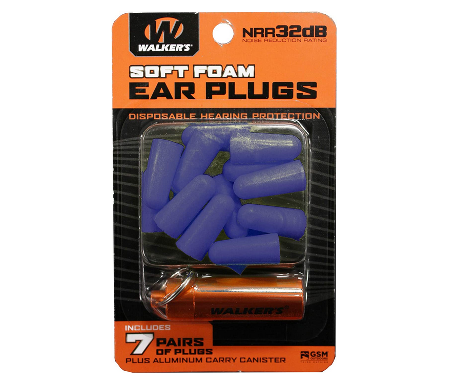 7 pairs of soft foam bright yellow earplugs. Comes with an aluminum carry canister.