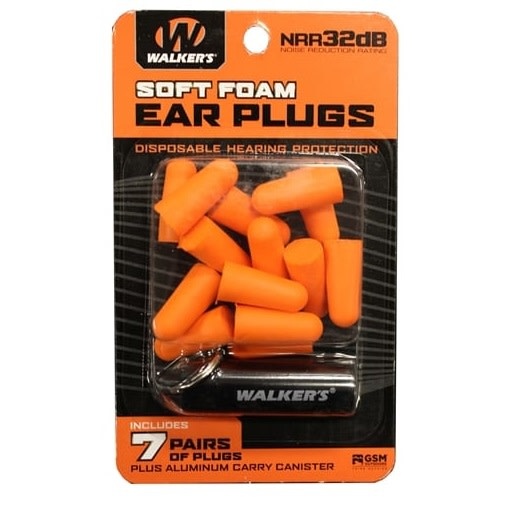 7 pairs of soft foam bright orange earplugs. Comes with an aluminum carry canister.